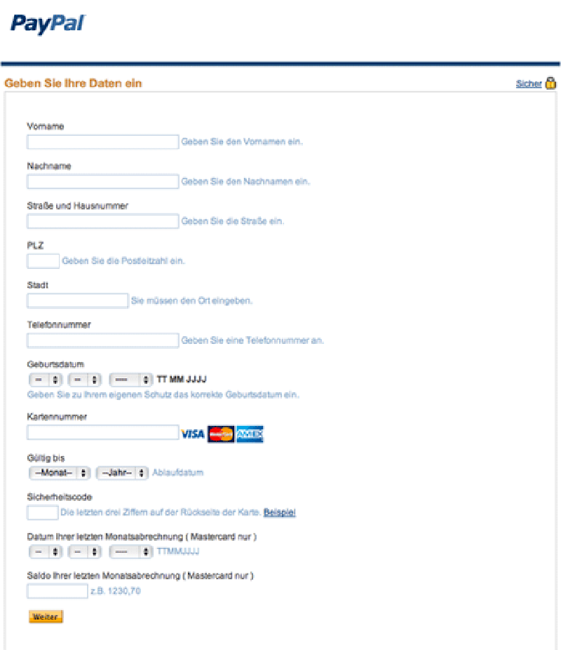 Bezahlungen, bei welchen gesicherte Daten bekannt gegeben werden müssen, sind nur im Rahmen einer Bestellung üblich und keinesfalls zur Speicherung oder Änderung bestehender Accounts vorgesehen.