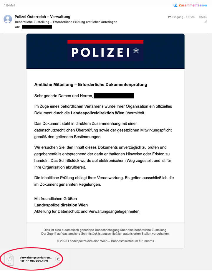 Es war wieder einmal so weit, dass man in den ohnehin hektischen Tagen vor Weihnachten eine neue Phishing-Welle verursachte, indem man ein angebliches Schreiben der Polizei im Netz verteilte. Gleich vorweg muss man aber erwähnen, dass die Polizei, das Finanzamt oder andere ähnliche Organisationen nie derartige Massenmails auf die Bevölkerung loslassen würden.